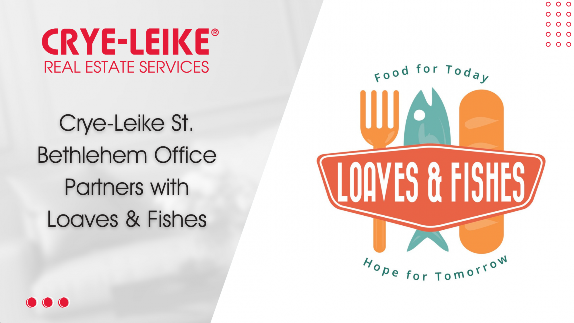 CLARKSVILLE, TN. - Crye-Leike Real Estate Services is proud to announce the partnership of its Clarksville - St. Bethlehem office with local soup kitchen, Loaves & Fishes, to support their "Giving From The Heart" Food Drive. From Jan. 20 to Feb. 14, the office will be accepting donations of canned, bottled or boxed food goods and supplies.